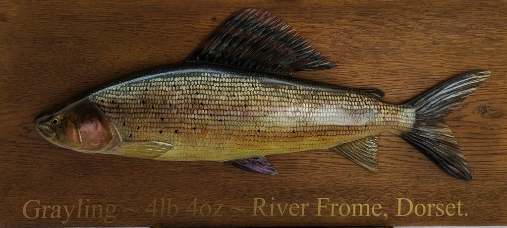 Grayling, from River Tweed, carved from wood.